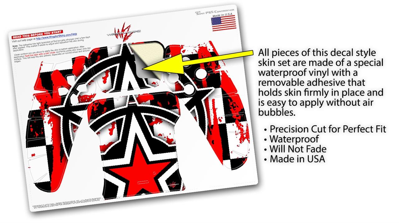 WraptorSkinz® skin wraps for the Sony Playstation 5 controller are printed using superb photo quality designs and vibrant colors printed with special fade resistant inks that last even in direct sun for years. WraptorSkinz are a composite of two layers of commercial grade materials. The bottom layer is a soft, flexible vinyl with a special removable adhesive that is easily positioned, applied without air bubbles. Next we print the bottom layer with UV protected, fade resistant inks that deliver superb photo quality designs in vibrant colors. Last, we bond a professional grade laminate over the entire skin adding a glossy protective finish. This product is not affiliated with or endorsed by Sony or the Playstation brand.