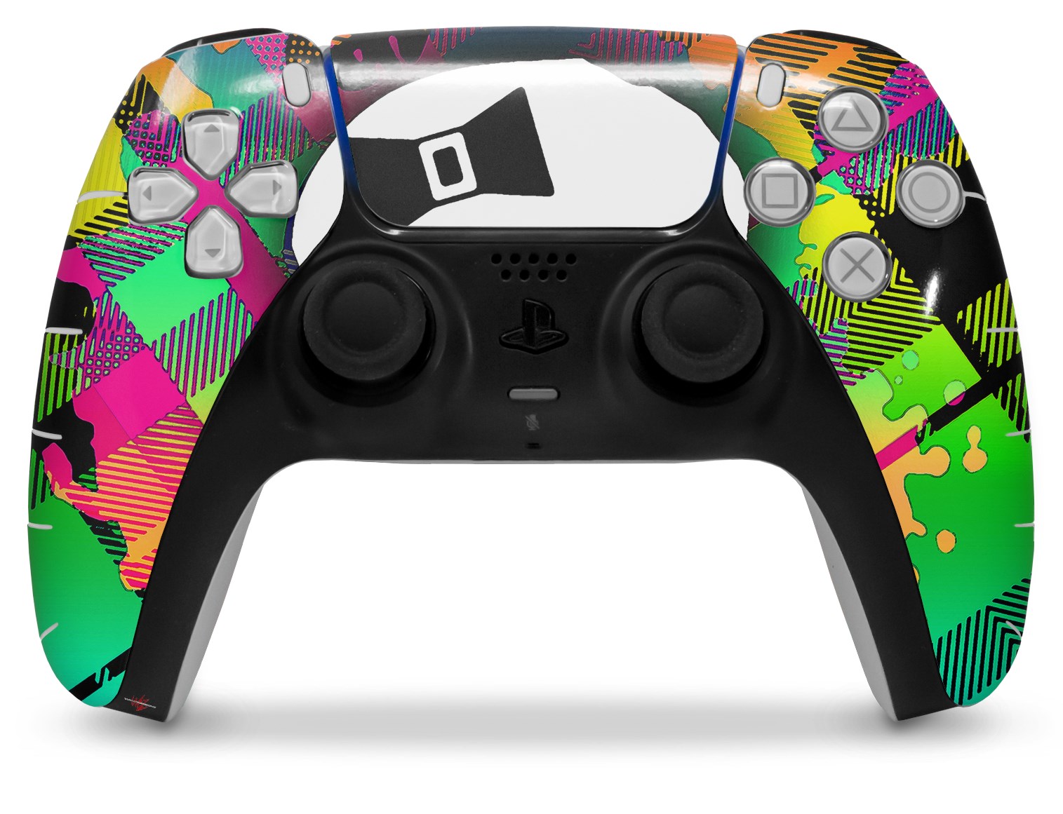 WraptorSkinz Skin Wrap compatible with the Sony PS5 DualSense Controller Rainbow Plaid Skull (CONTROLLER NOT INCLUDED)