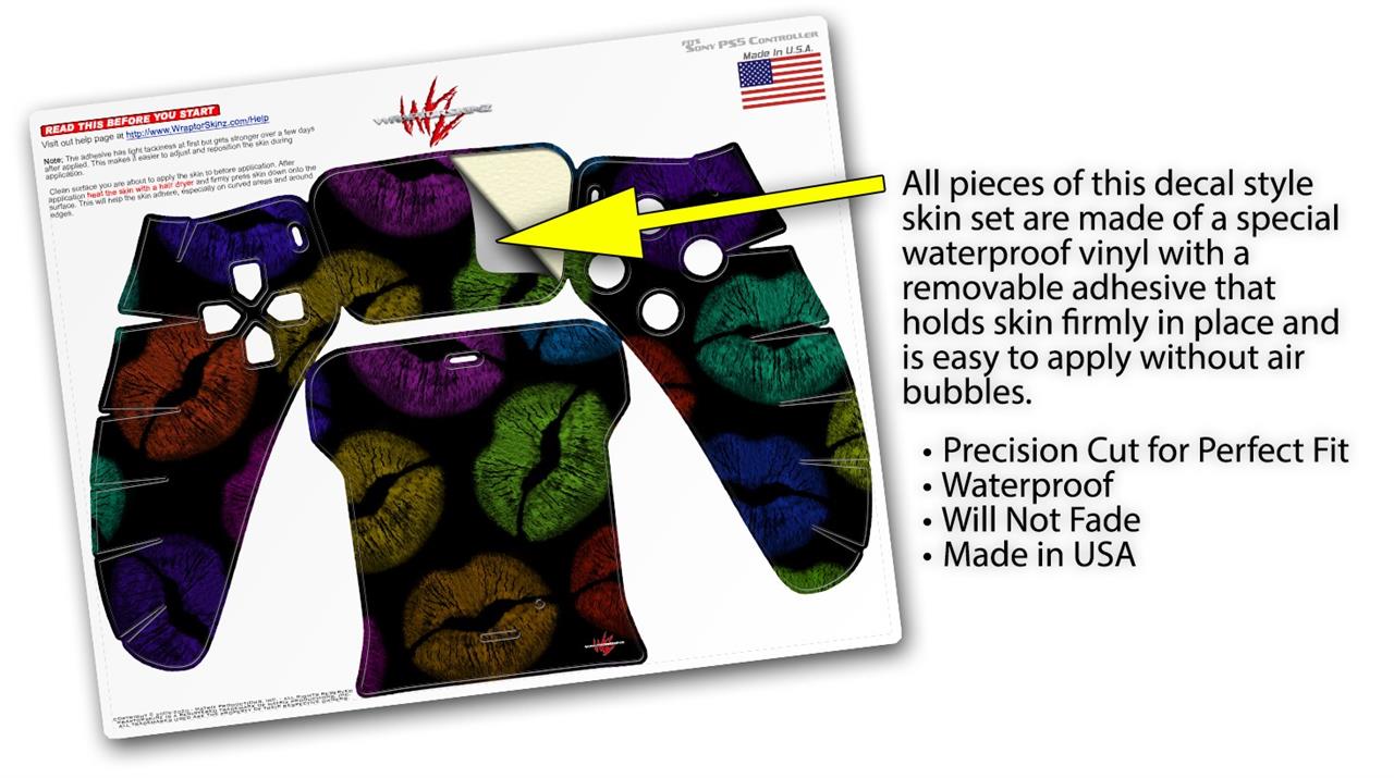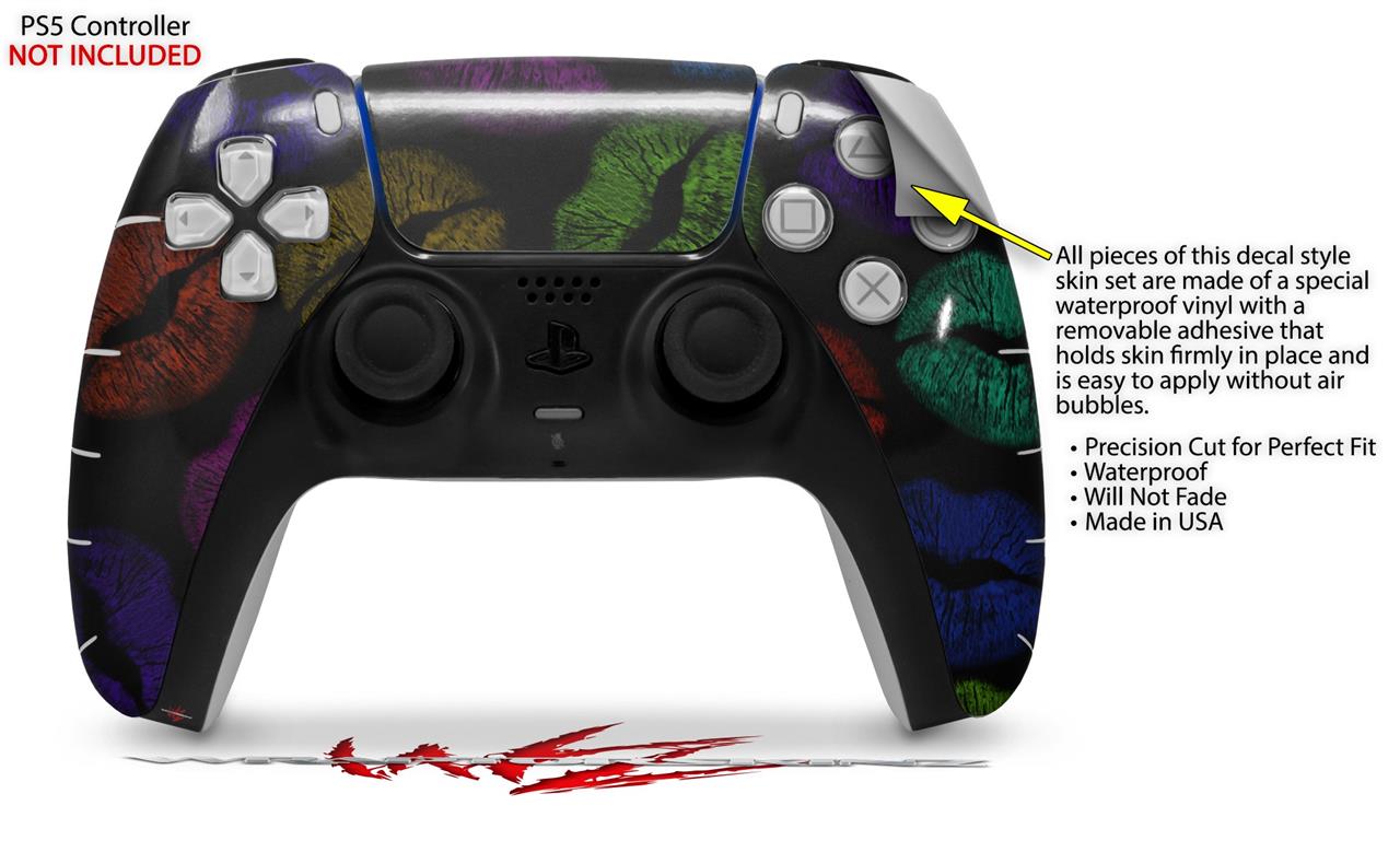 WraptorSkinz Skin Wrap compatible with the Sony PS5 DualSense Controller Rainbow Lips Black (CONTROLLER NOT INCLUDED)