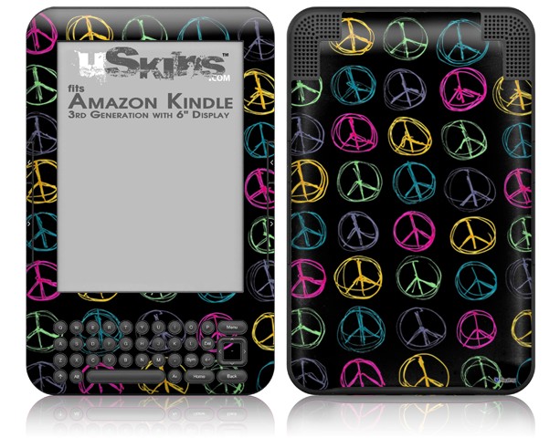 Kearas Peace Signs Black - Decal Style Skin fits Amazon Kindle 3 Keyboard (with 6 inch display)