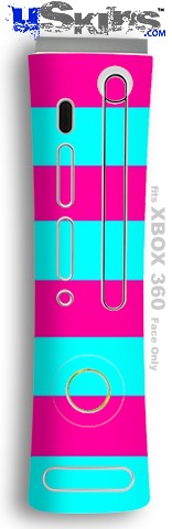 XBOX 360 Faceplate Skin - Psycho Stripes Neon Teal and Hot Pink