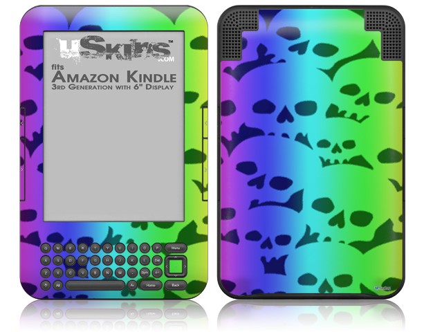 Rainbow Skull Collection - Decal Style Skin fits Amazon Kindle 3 Keyboard (with 6 inch display)