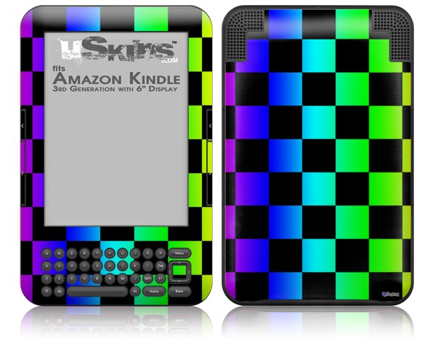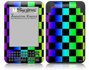 Rainbow Checkerboard - Decal Style Skin fits Amazon Kindle 3 Keyboard (with 6 inch display)
