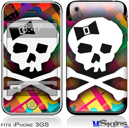 iPhone 3GS Skin - Rainbow Plaid Skull