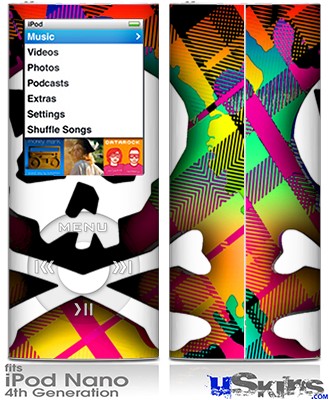 iPod Nano 4G Skin - Rainbow Plaid Skull