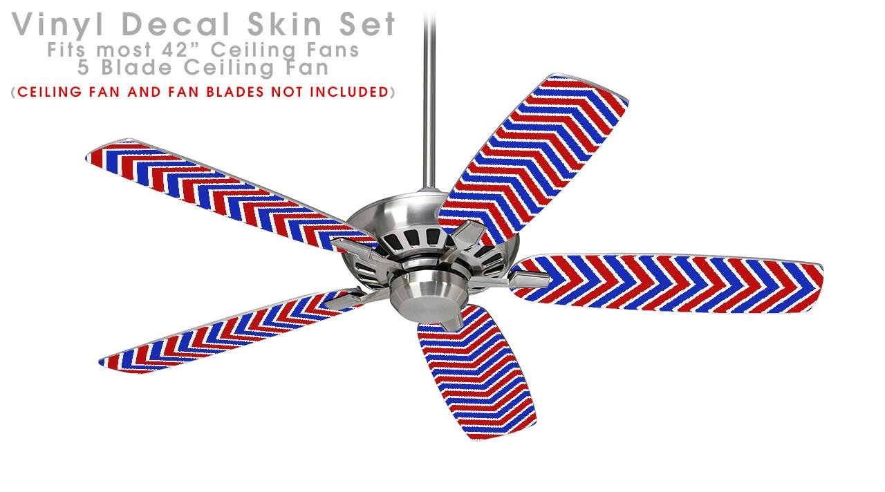 Zig Zag Red White and Blue - Ceiling Fan Skin Kit fits most 42 inch fans (FAN and BLADES SOLD SEPARATELY)