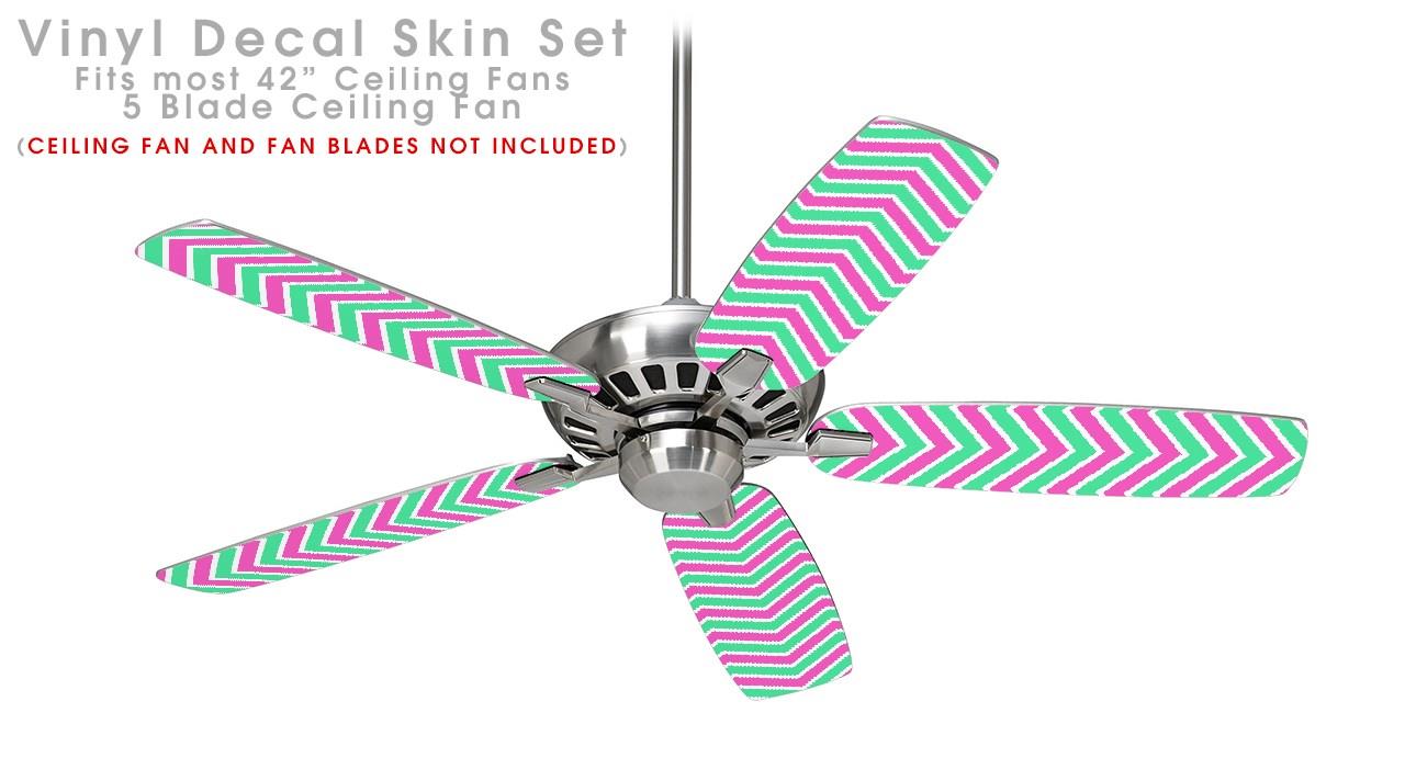 Zig Zag Teal Green and Pink - Ceiling Fan Skin Kit fits most 42 inch fans (FAN and BLADES SOLD SEPARATELY)