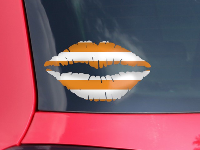 Lips Decal 9x5.5 Kearas Psycho Stripes Orange and White