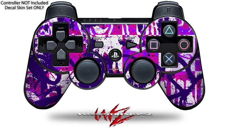 Sony PS3 Controller Decal Style Skin - Purple Checker Graffiti (CONTROLLER NOT INCLUDED)