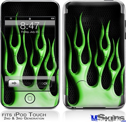 iPod Touch 2G & 3G Skin - Metal Flames Green