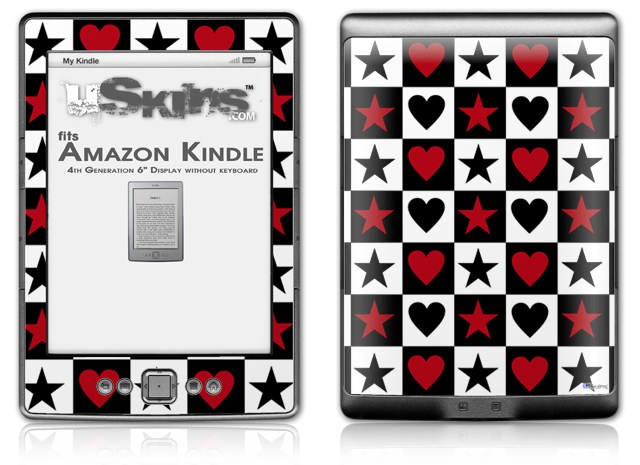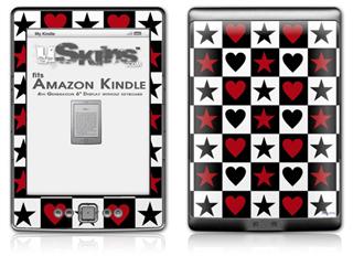 Hearts and Stars Red - Decal Style Skin (fits 4th Gen Kindle with 6inch display and no keyboard)