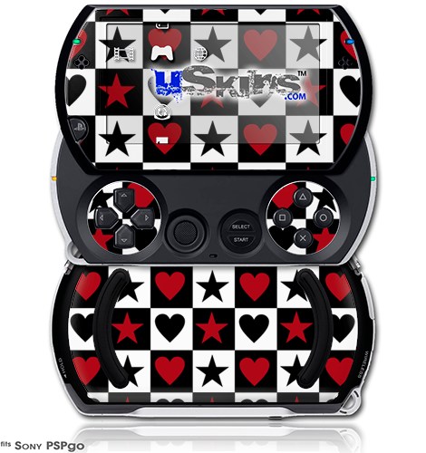 Hearts and Stars Red - Decal Style Skins (fits Sony PSPgo)