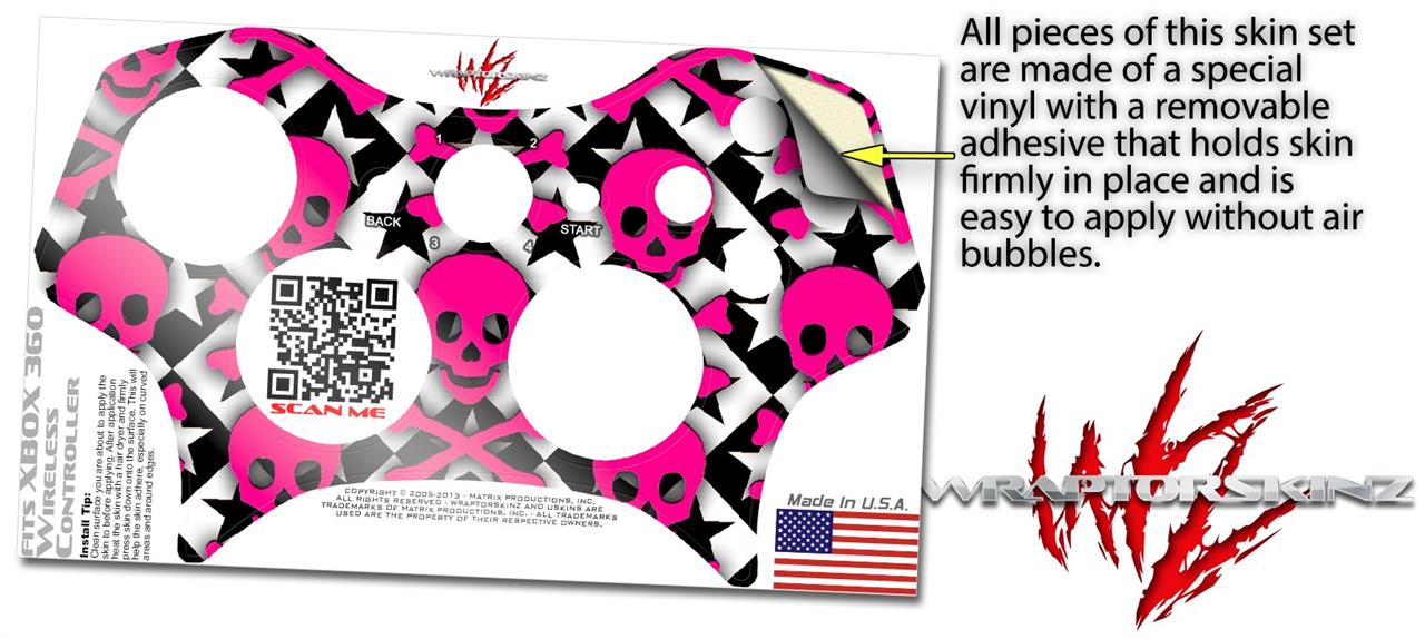 XBOX 360 Wireless Controller Decal Style Skin - Pink Skulls and Stars (CONTROLLER NOT INCLUDED)