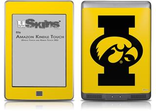 Iowa Hawkeyes Tigerhawk Oval 02 Black on Gold - Decal Style Skin (fits Amazon Kindle Touch Skin)