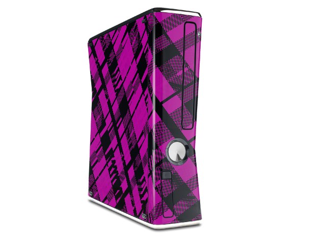 Pink Plaid Decal Style Skin for XBOX 360 Slim Vertical