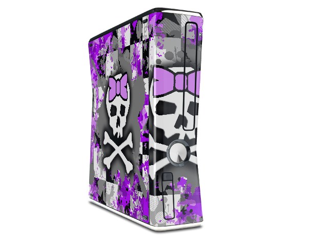 Purple Princess Skull Decal Style Skin for XBOX 360 Slim Vertical
