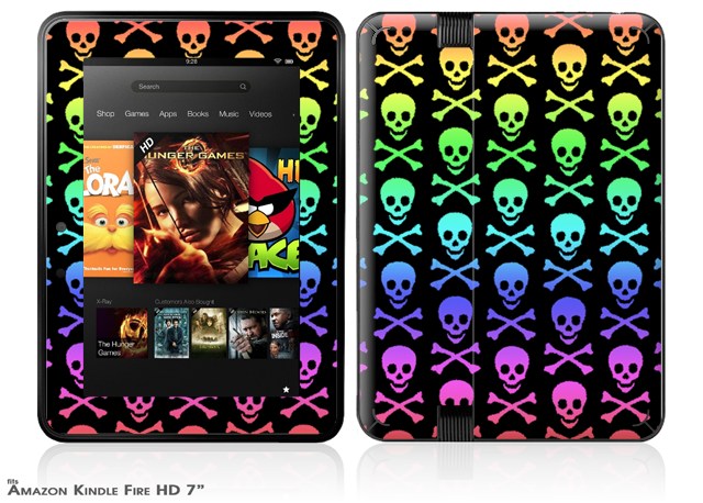Skull and Crossbones Rainbow Decal Style Skin fits 2012 Amazon Kindle Fire HD 7 inch