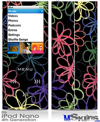 iPod Nano 4G Skin - Kearas Flowers on Black