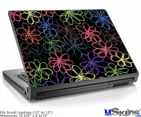 Laptop Skin (Small) - Kearas Flowers on Black
