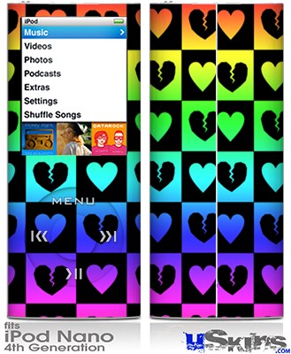 iPod Nano 4G Skin - Love Heart Checkers Rainbow