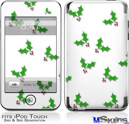 iPod Touch 2G & 3G Skin - Holly Leaves on White