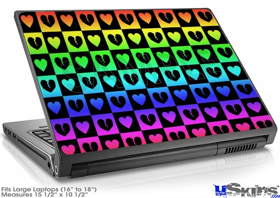 Laptop Skin (Large) - Love Heart Checkers Rainbow