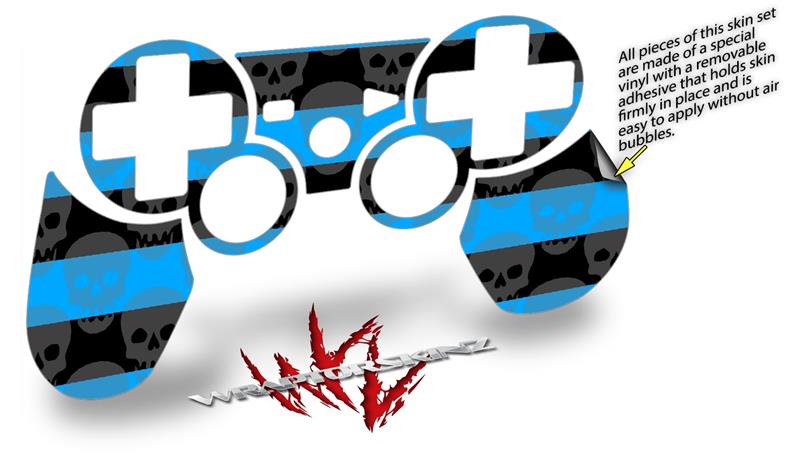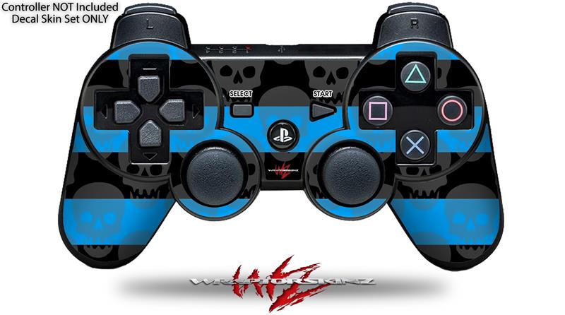 Sony PS3 Controller Decal Style Skin - Skull Stripes Blue (CONTROLLER NOT INCLUDED)