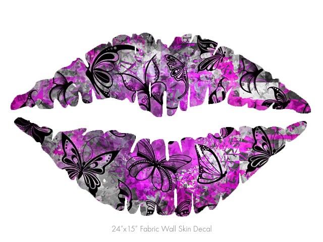 Butterfly Graffiti - Kissing Lips Fabric Wall Skin Decal measures 24x15 inches