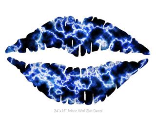 Electrify Blue - Kissing Lips Fabric Wall Skin Decal measures 24x15 inches