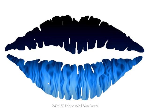 Fire Flames Blue - Kissing Lips Fabric Wall Skin Decal measures 24x15 inches