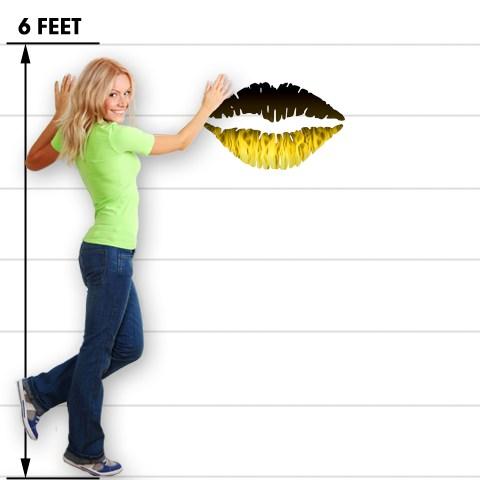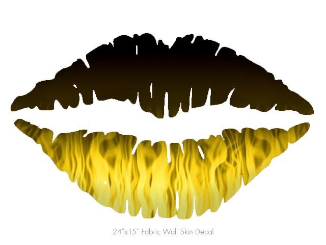 Fire Flames Yellow - Kissing Lips Fabric Wall Skin Decal measures 24x15 inches