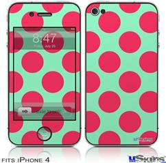 iPhone 4 Decal Style Vinyl Skin - Kearas Polka Dots Pink And Blue (DOES NOT fit newer iPhone 4S)