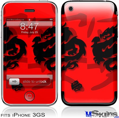 iPhone 3GS Skin - Oriental Dragon Black on Red