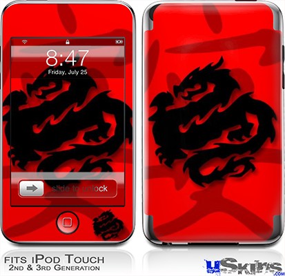 iPod Touch 2G & 3G Skin - Oriental Dragon Black on Red
