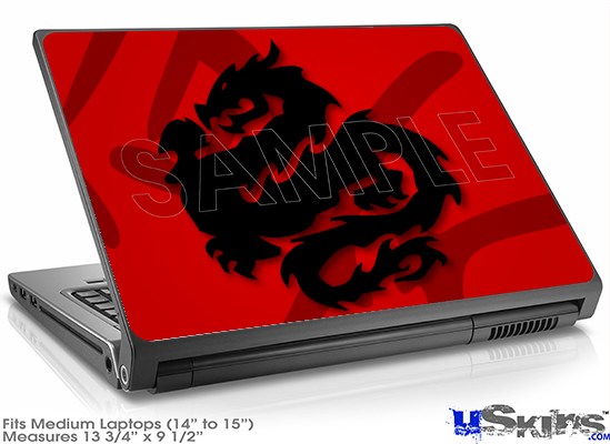 Laptop Skin (Medium) - Oriental Dragon Black on Red
