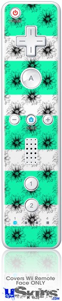 Wii Remote Controller Face ONLY Skin - Kearas Daisies Stripe Sea Foam