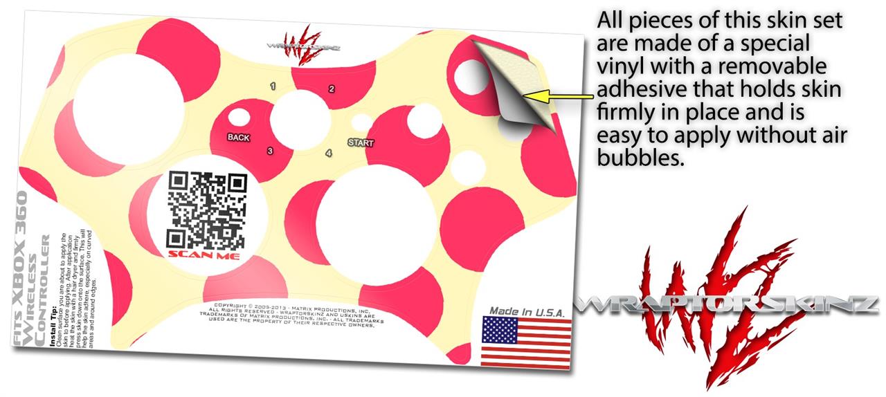 XBOX 360 Wireless Controller Decal Style Skin - Kearas Polka Dots Pink On Cream (CONTROLLER NOT INCLUDED)
