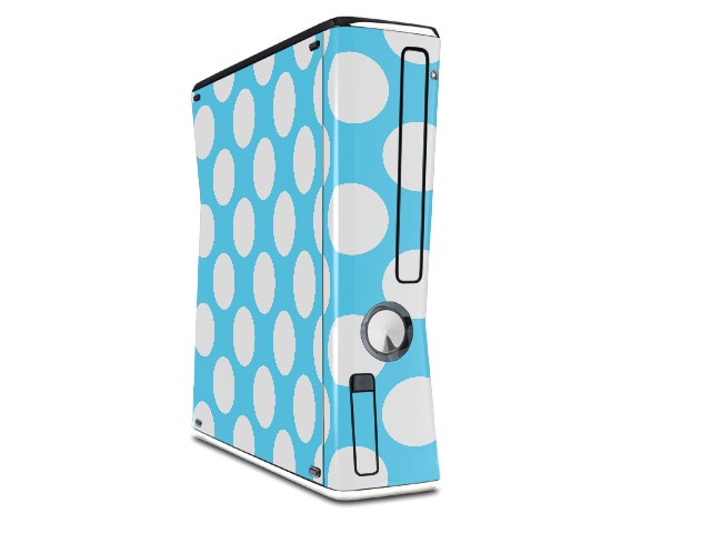 Kearas Polka Dots White And Blue Decal Style Skin for XBOX 360 Slim Vertical