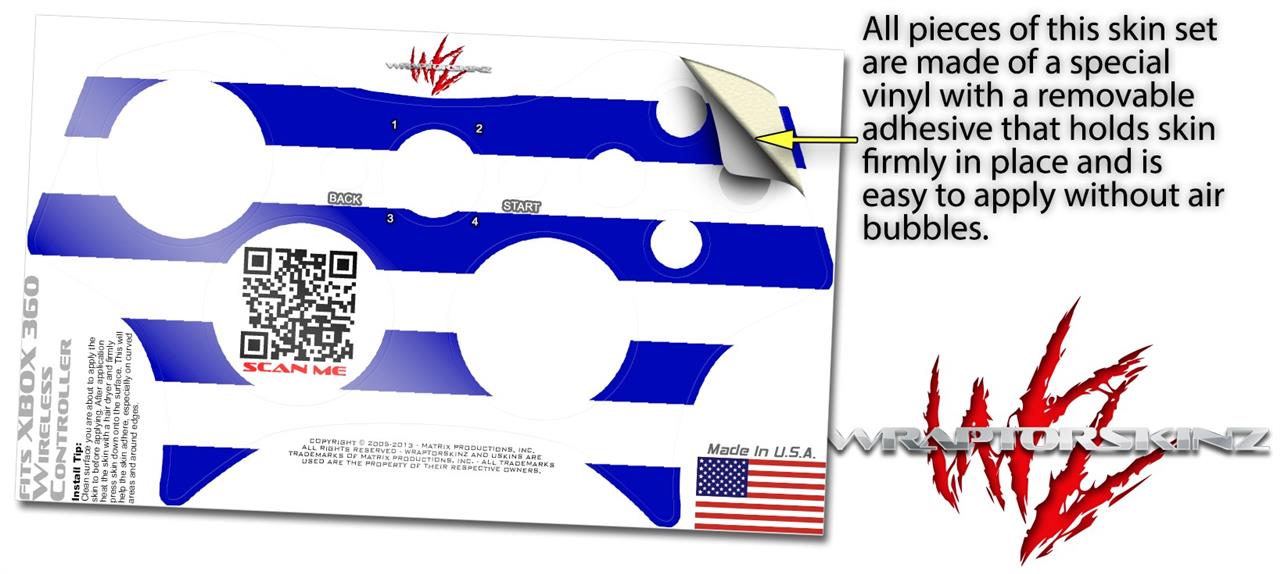 XBOX 360 Wireless Controller Decal Style Skin - Psycho Stripes Blue and White (CONTROLLER NOT INCLUDED)