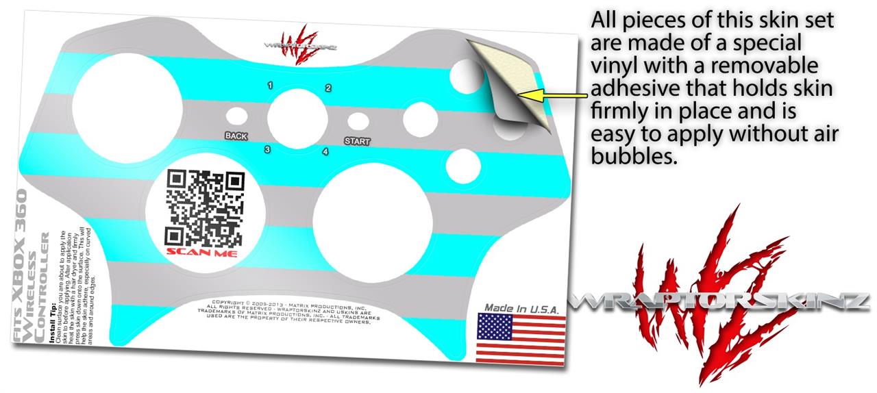 XBOX 360 Wireless Controller Decal Style Skin - Psycho Stripes Neon Teal and Gray (CONTROLLER NOT INCLUDED)
