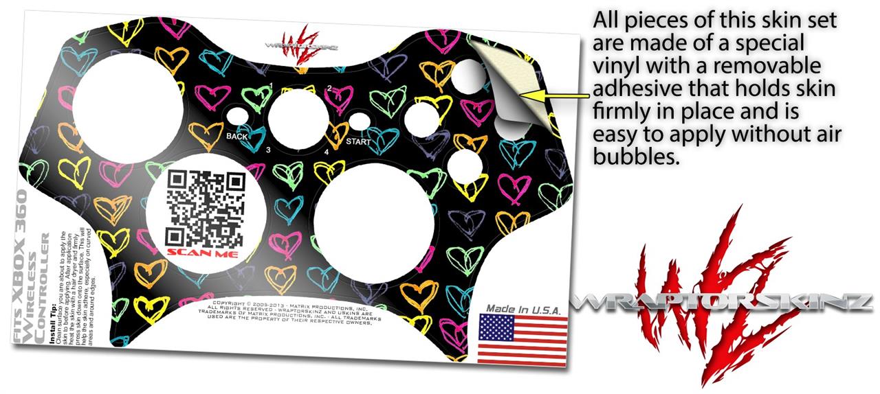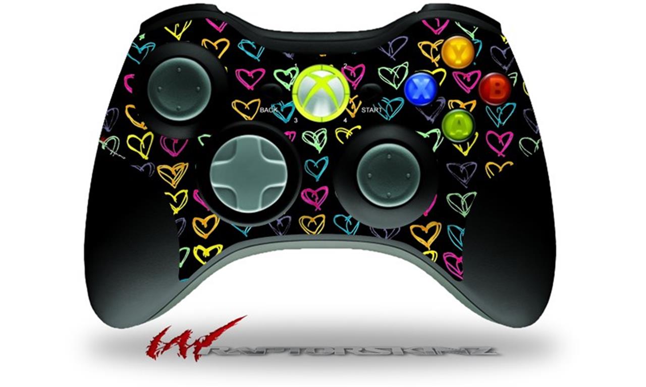 XBOX 360 Wireless Controller Decal Style Skin - Kearas Hearts Black (CONTROLLER NOT INCLUDED)