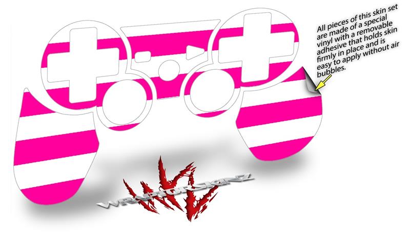 Sony PS3 Controller Decal Style Skin - Psycho Stripes Hot Pink and White (CONTROLLER NOT INCLUDED)