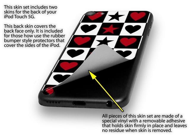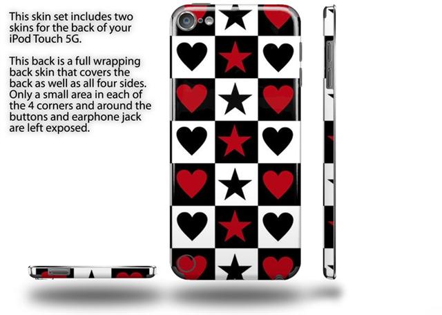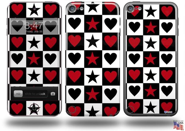 Hearts and Stars Red Decal Style Vinyl Skin - fits Apple iPod Touch 5G (IPOD NOT INCLUDED)