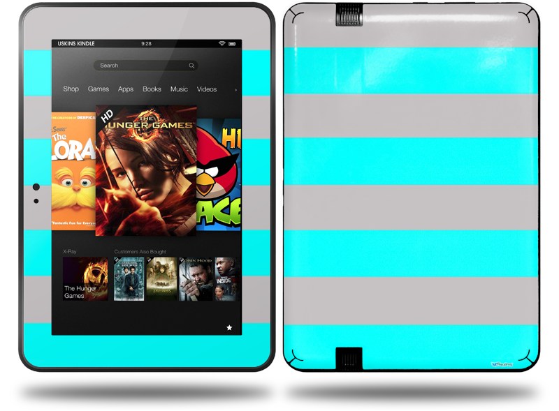 Psycho Stripes Neon Teal and Gray Decal Style Skin fits Amazon Kindle Fire HD 8.9 inch