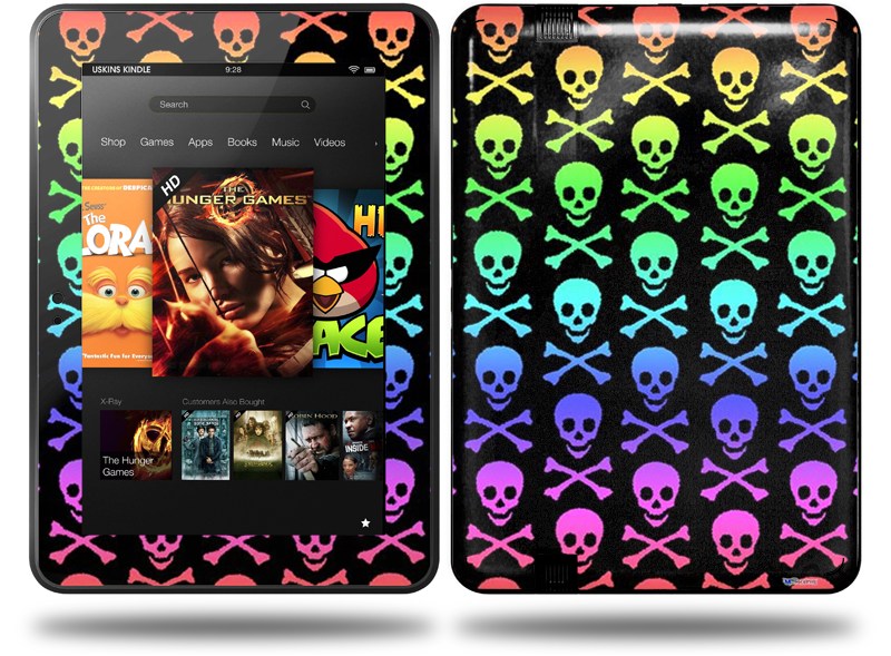 Skull and Crossbones Rainbow Decal Style Skin fits Amazon Kindle Fire HD 8.9 inch