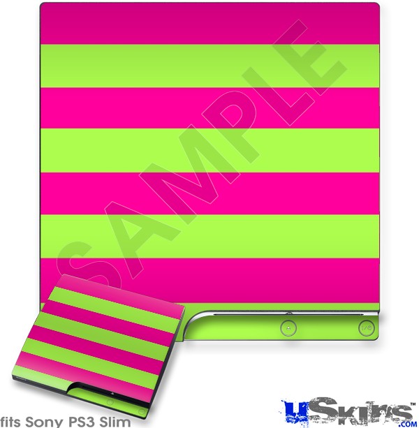 Decal Skin compatible with Sony PS3 Slim Psycho Stripes Neon Green and Hot Pink
