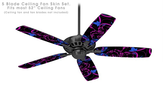 Twisted Garden Hot Pink and Blue - Ceiling Fan Skin Kit fits most 52 inch fans (FAN and BLADES SOLD SEPARATELY)