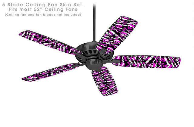 Zebra Pink Skulls - Ceiling Fan Skin Kit fits most 52 inch fans (FAN and BLADES SOLD SEPARATELY)