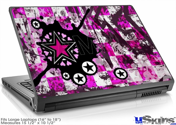 Laptop Skin fits most larger size laptops with 16" to 18" screens. Skin measures 15 1/2" wide x 10 1/2" high. uSkinsTM self adhering vinyl skins will look amazing on your electronic gear, printed at the highest resolution possible for unbeatable color and razor sharp clarity. Unlike bulky silicon, plastic or metal cases and faceplates, uSkins are designed to be thin and very tough. uSkins are a composite of layered commercial grade vinyls. The bottom layer is a soft, flexible vinyl with a special removable adhesive that is easily positioned, applied without air bubbles, and effortlessly removed without leaving a sticky residue. uSkins are printed with the latest in UV protected inks that resist fading for up to 3 years even in direct sunlight. Finally we bond a professional grade laminate over the entire skin adding a professional glossy protective finish.