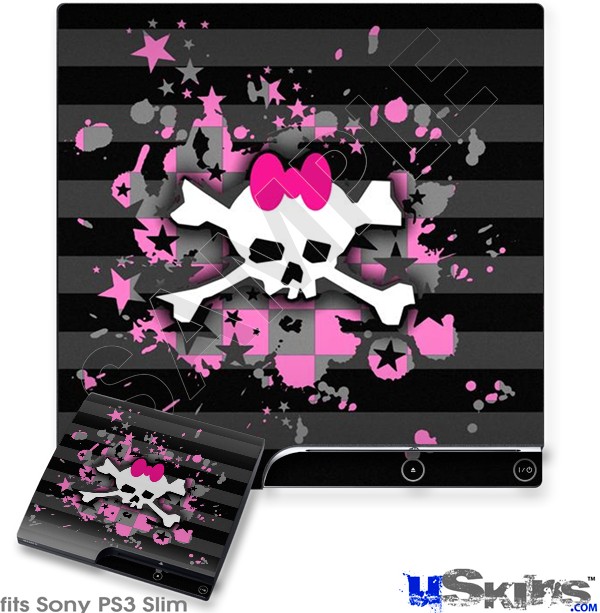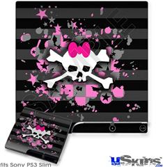 Decal Skin compatible with Sony PS3 Slim Pink Bow Skull